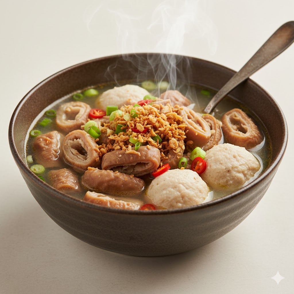 Clear broth with flavorful pork intestines (Bituka), available plain or with fishballs.