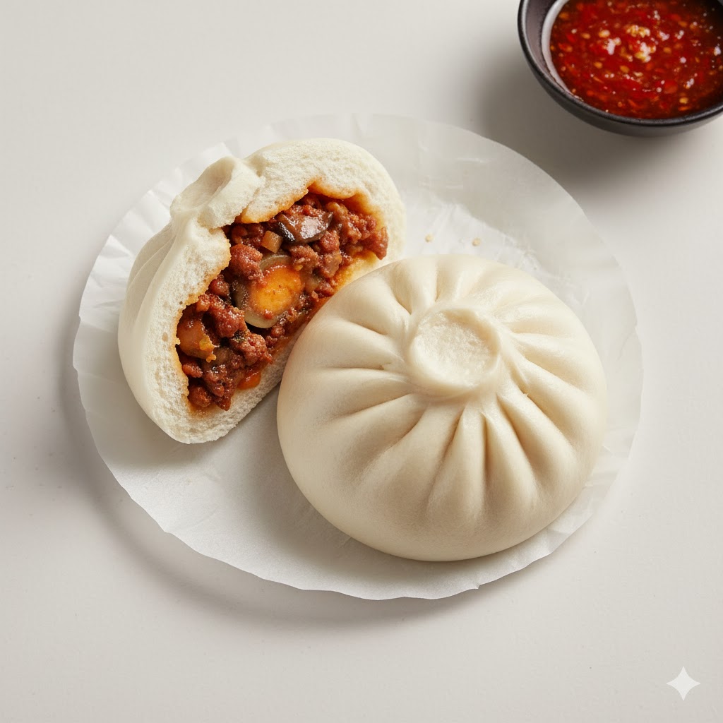 Fluffy steamed buns filled with savory-sweet pork (Asado) or a meatball filling.