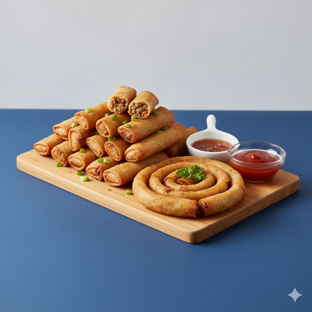 Crispy deep-fried spring rolls filled with a ground meat and vegetable mix.