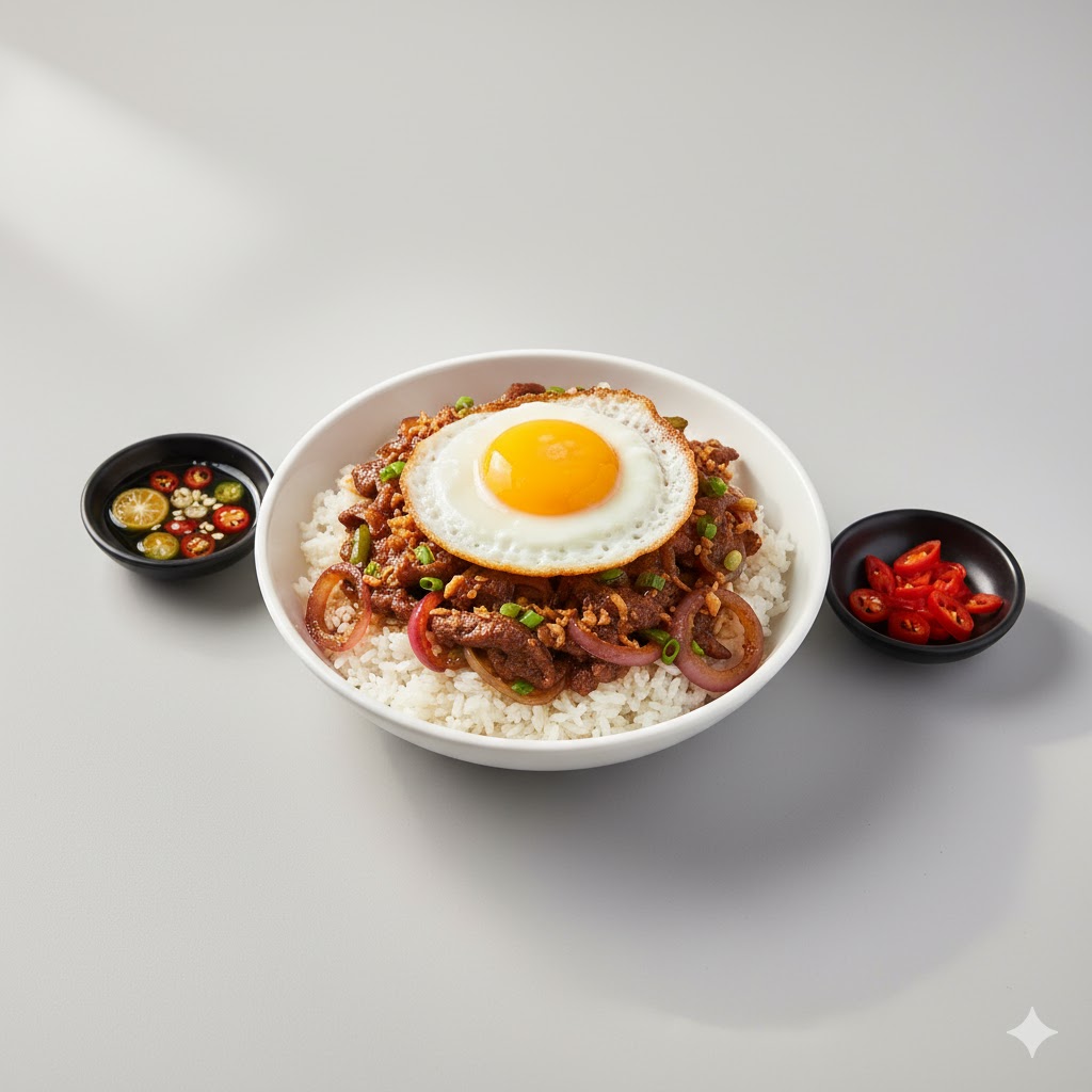 Tender beef slices stir-fried with sweet and caramelized onions, served over rice.