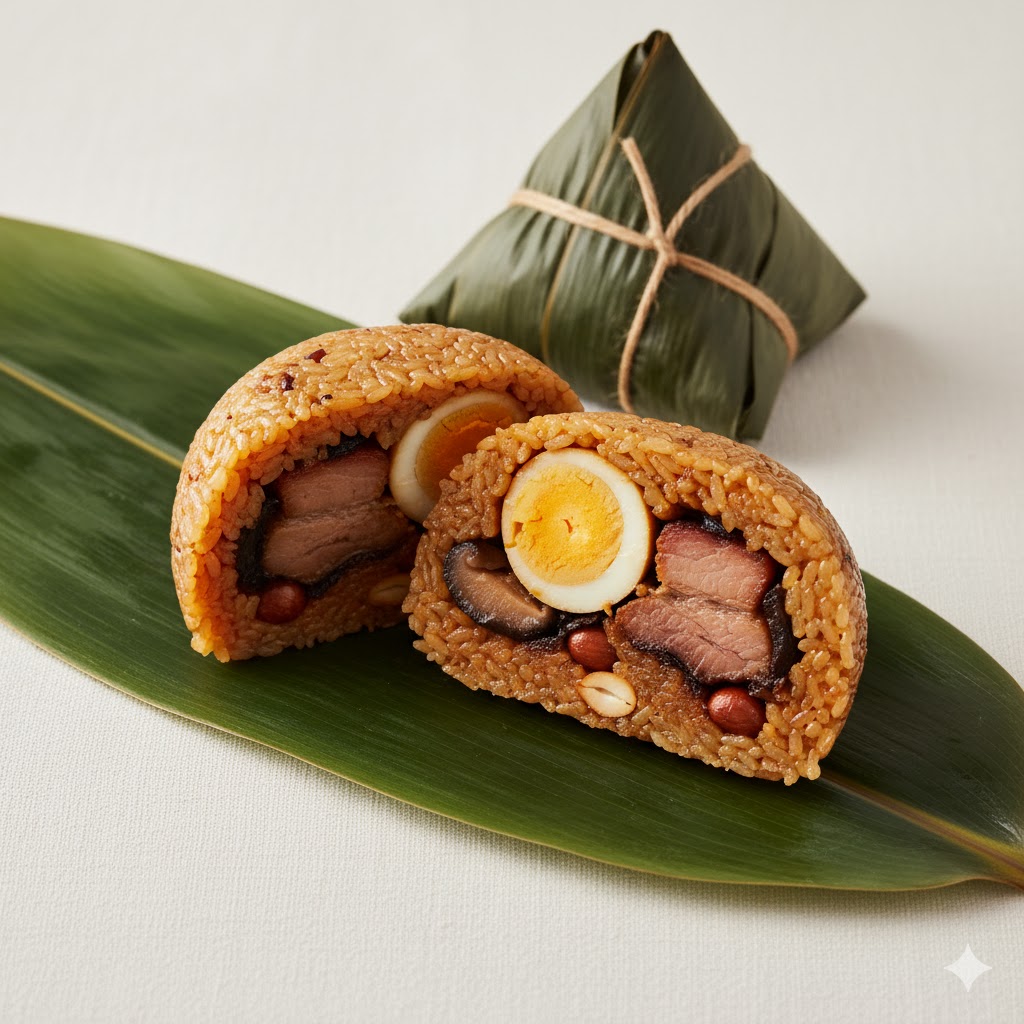 Sticky rice dumpling filled with meat, Chinese sausage, and savory ingredients.