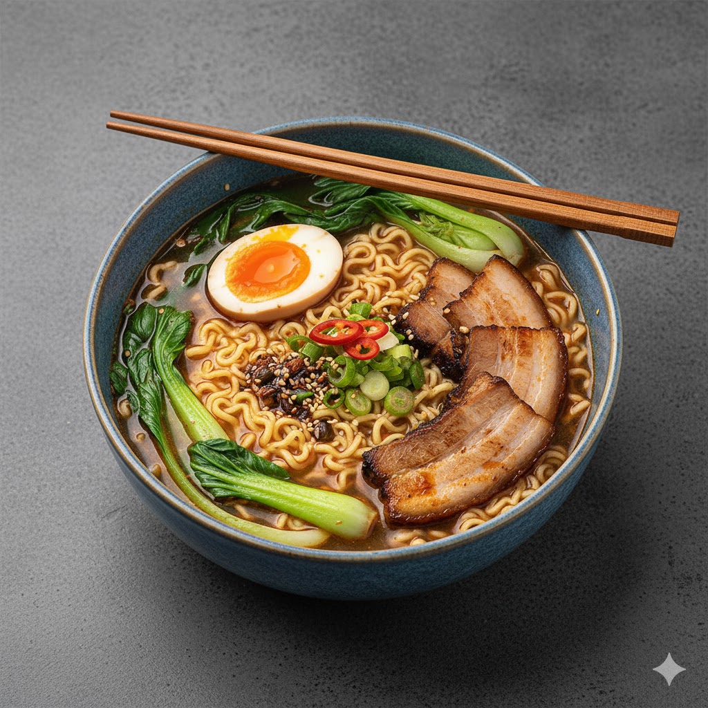 Noodle soup featuring slow-cooked, tender beef brisket (Camto).