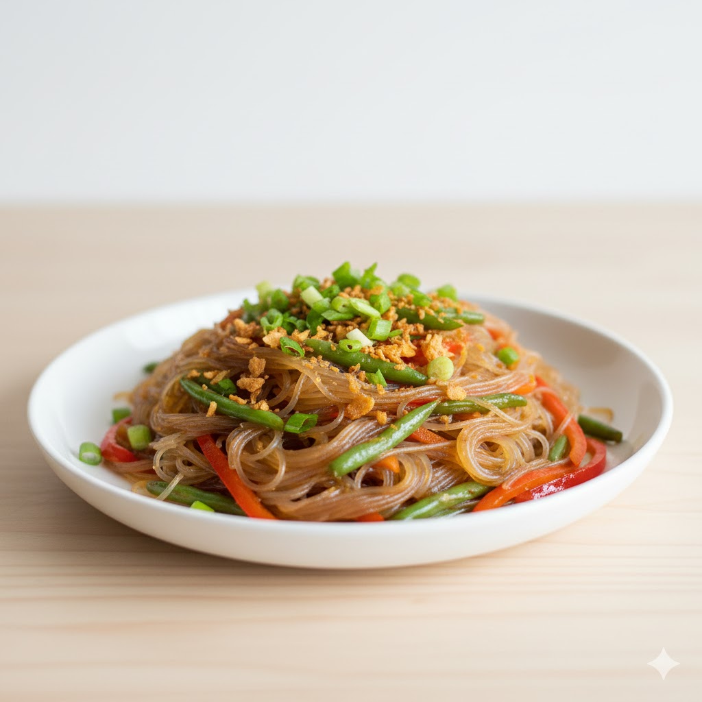 Light and flavorful stir-fry of glass (mung bean) noodles.