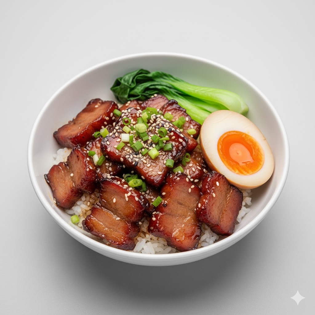Savory-sweet Chinese roasted pork (Asado) served over rice.